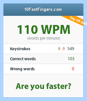 when i took the typing test, i got a result of 110 wpm as my typing speed